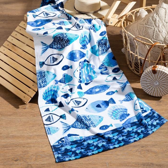 Полотенце «Рыбы» 70*140 см, велюр/махра 350гр/м2, 100% хлопок
