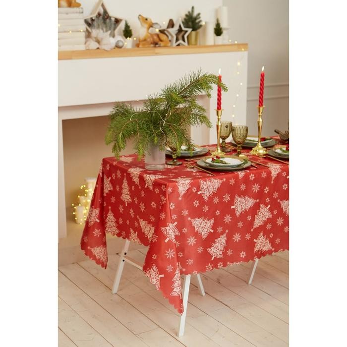 Скатерть Доляна «Новый год: Ёлочки» 145*180 +/- 2 см, 100% п/э