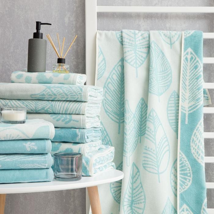 Полотенце махровое Этель Foliage бирюза, 70×130 см, 100% хл, велюр, 420 гр/м2