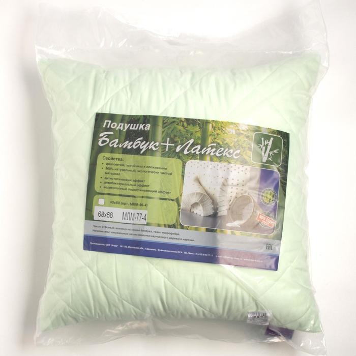 Подушка Бамбук+Латекс высокая 68×68 см зел., бамбуковое волокно/натур.латекс, микрофибра, пэ