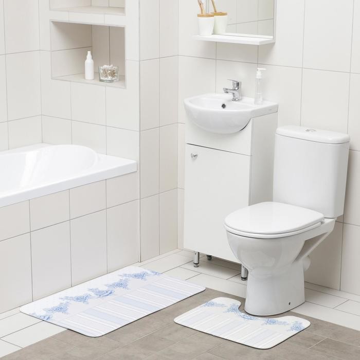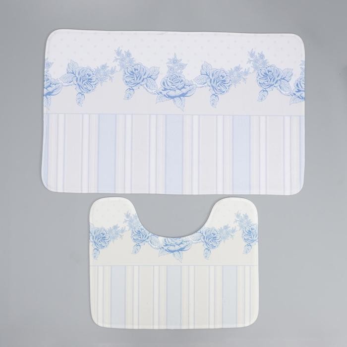 Набор ковриков для ванны и туалета Доляна «Рози», 2 шт: 50×80, 40×50 см