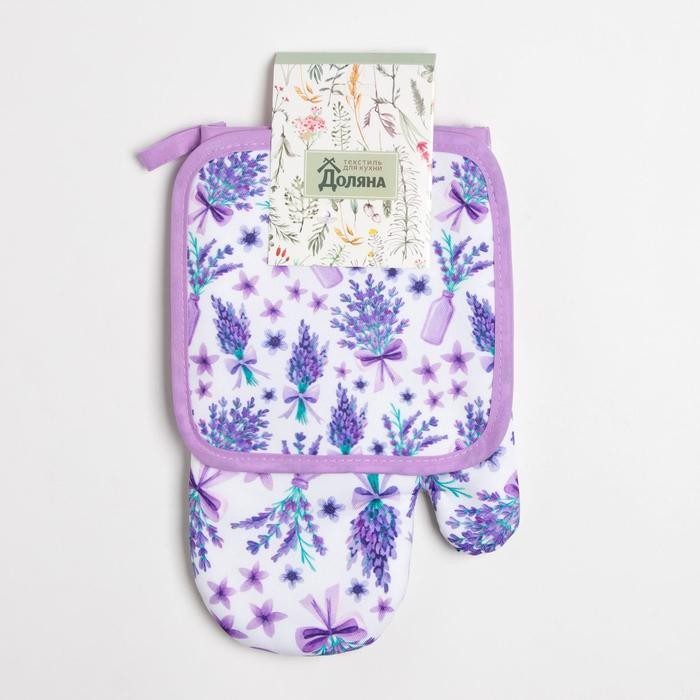 Кухонный набор Доляна «Романтика», прихватка 17*17 см, рукавица 26*16 см,100% п/э