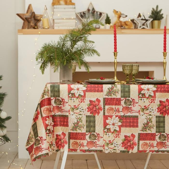 Скатерть Доляна «Новый год: Новогодние игрушки» 145*300 +/- 2 см, 100% п/э