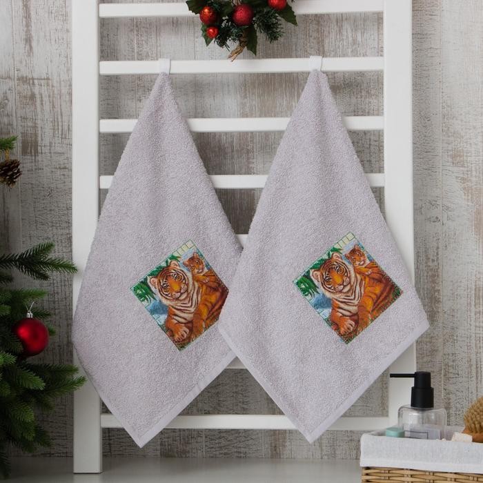 Новогодние полотенца (подарочный набор 2 шт.) Королева джунглей 40х70см, бежевый, хлопок 100%, 400г/м2