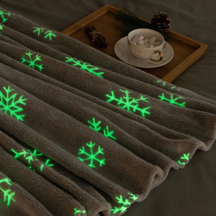 Плед светящийся в темноте Этель «Снежинки» 150*200 см,100% п/э, корал-флис, 220 гр/м2