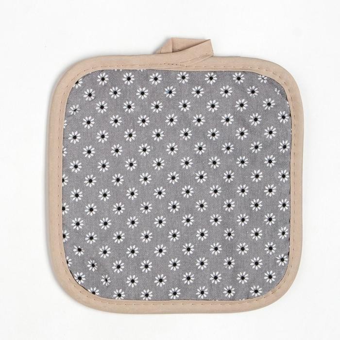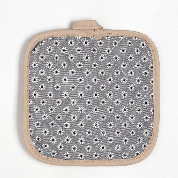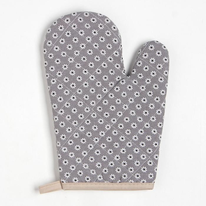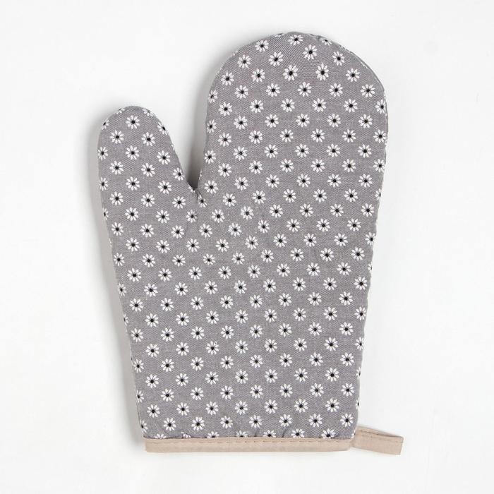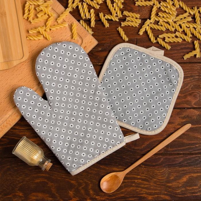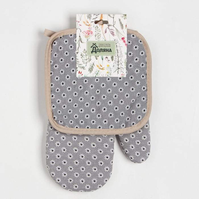 Кухонный набор Доляна «Цветы на сером», прихватка, 17*17 см, рукавица 26*16 см,100% п/э