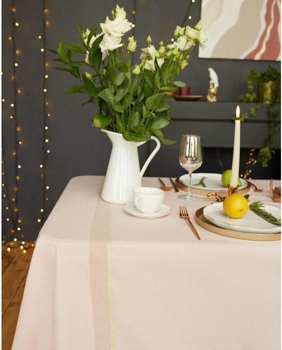 Скатерть «Этель» 180×165 см, цв. пудровый с золотой нитью, 100% хлопок, 163 г/м2