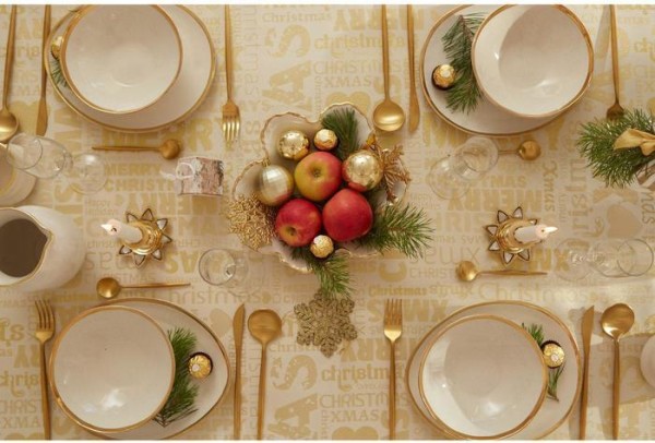 Скатерть Этель «Новый год: Merry xmas» цвет золотой, 142*220 +/-3 см, 115 ±10 гр, 100% п/э
