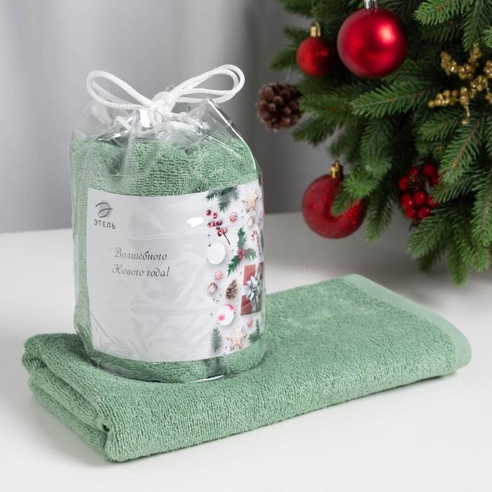 Полотенце подарочное Этель «Новый год: Волшебного года» цвет эвкалиптовый, 50х90см, 100% хл, 340 г/м2
