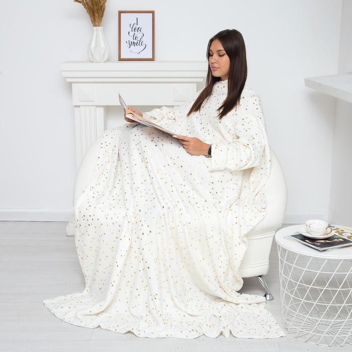 Плед с рукавами Этель «Золотые звезды» 150*200 см,100% п/э, корал-флис 220 гр/м2