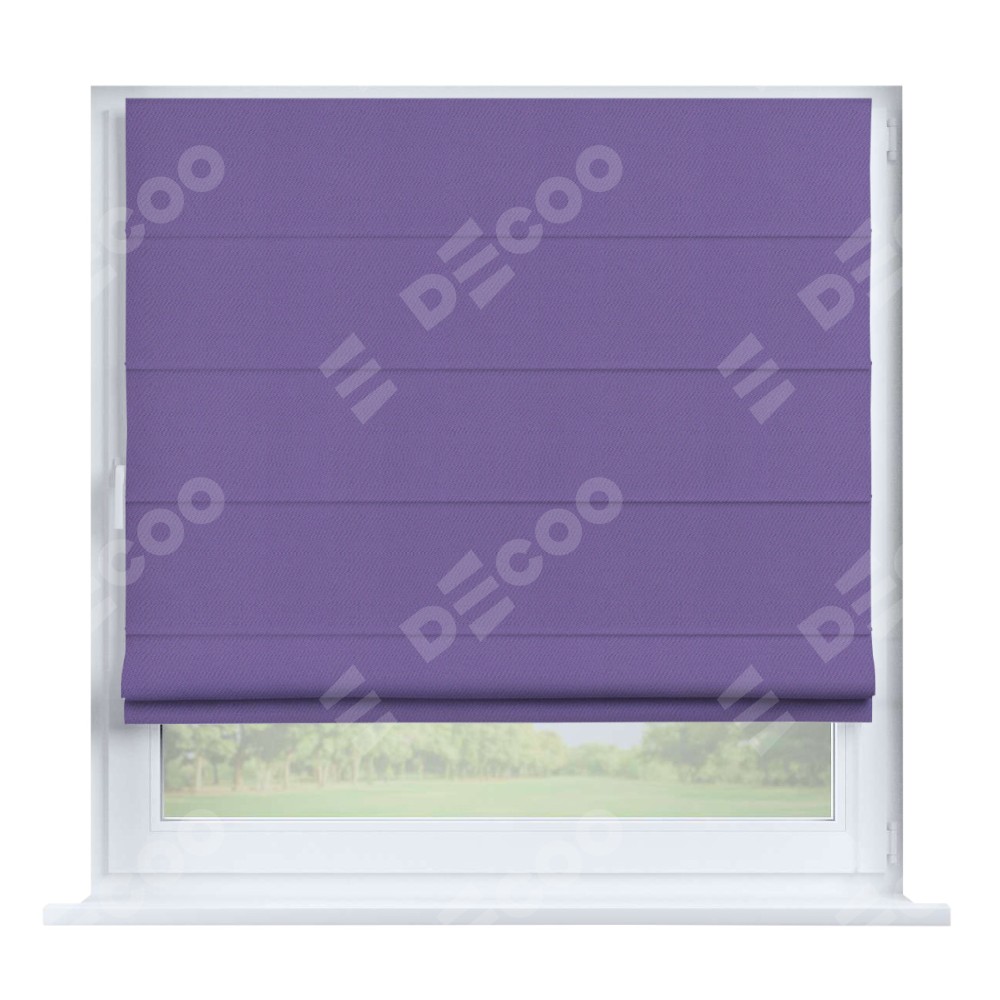 Римская штора производителя «Cortin», устанавливается на створку окна, пошита из ткани блэкаут однотонный сиреневый, артикул 88305. Штора шьётся по индивидуальным размерам, для данного типа римской шторы возможная ширина от 35 до 150 см., высота до 250 см.