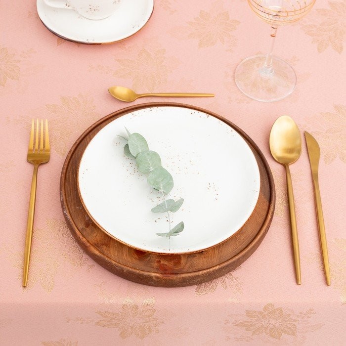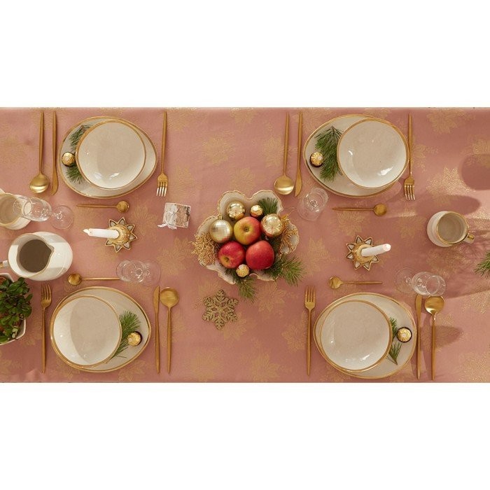 Скатерть Этель «Пуансеттия» цв.розовый, 142*110 +/-3 см, 115 ±10 гр,100% п/э