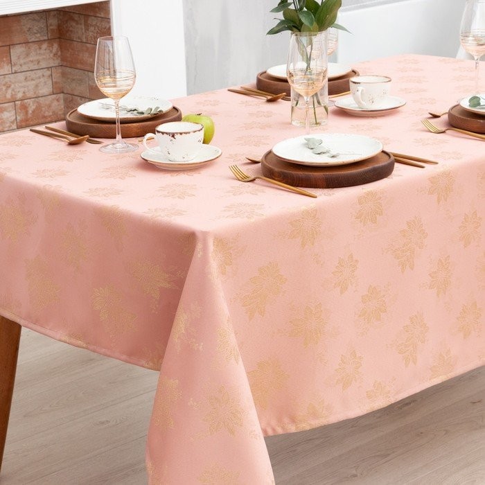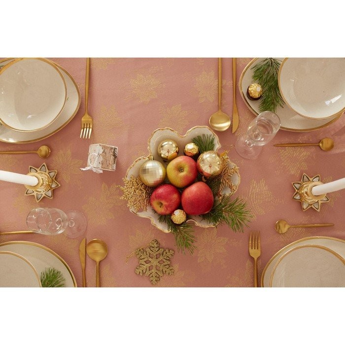 Скатерть Этель «Пуансеттия» цв.розовый, 142*283 +/-3 см, 115 ±10 гр,100% п/э