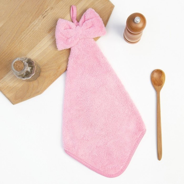 Кухонное полотенце Доляна «Бантик"цв.розовый 28×40 см, микрофибра, 100% п/э