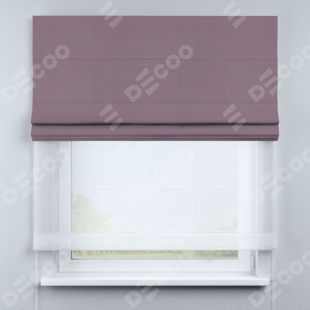 Римская штора день-ночь производителя «Cortin», используется для проёма, пошита из двух полотен, с лицевой стороны блэкаут однотонный брусника артикул 88302, вторая ткань тюль (по стандарту комплектуется тюль белого цвета артикул V-01). Имеет универсальный механизм и подходит для монтажа: на потолок, на стену и в нишу.