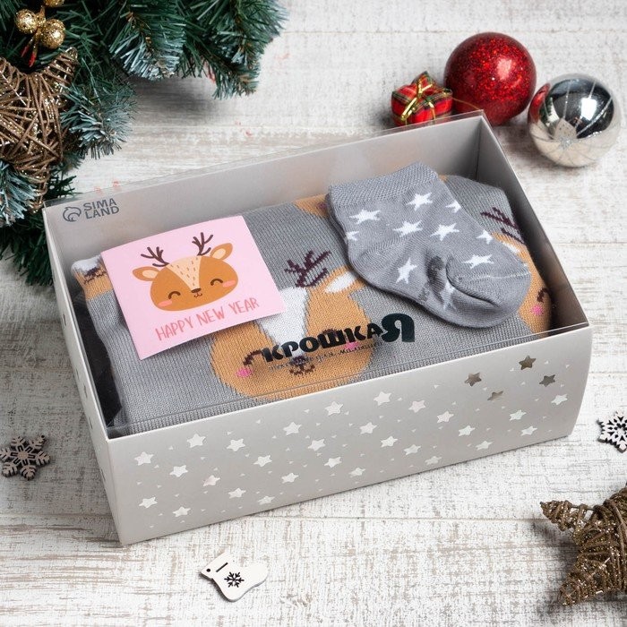 Подарочный набор Крошка Я «Олененок», плед 90х90см, носки 10−12 см