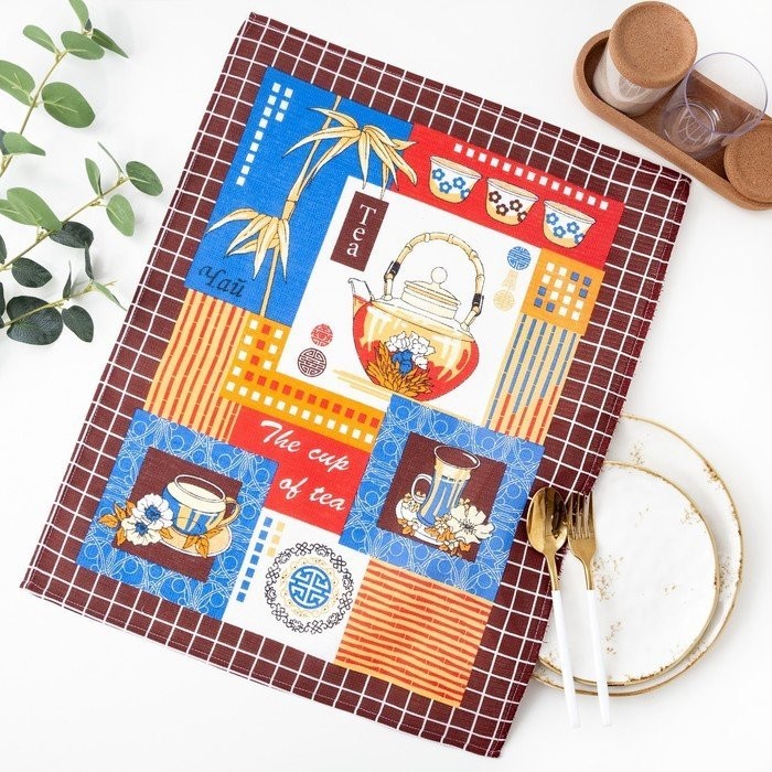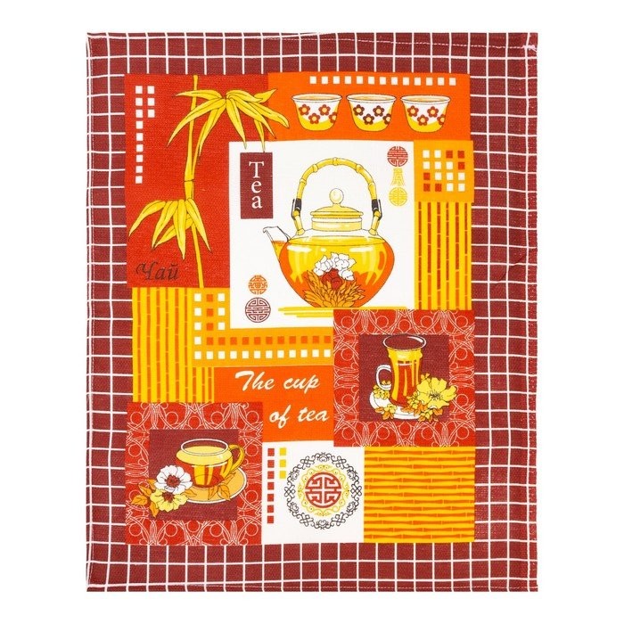 Полотенце 45×60 см, Чаепитие, коричневый, вафля, 160 гр/м2, хлопок 100%