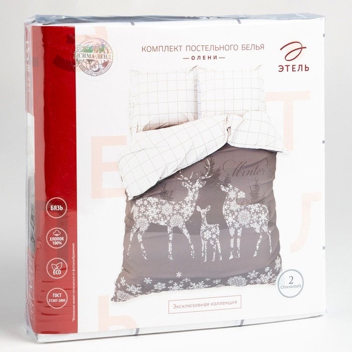 Постельное бельё «Этель» 1.5 сп Олени 143*215 см, 150*214 см, 70*70 см — 2 шт, бязь 125гр/м2