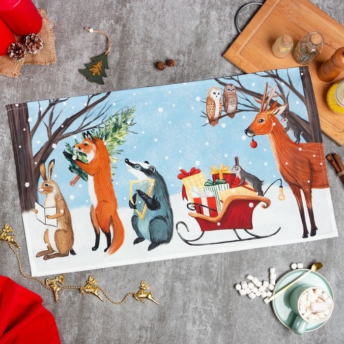 Новогоднее полотенце «Этель» Forest dwellers 40х73см, 100% хл, саржа 190 гр/м2