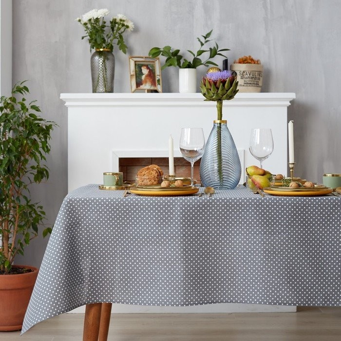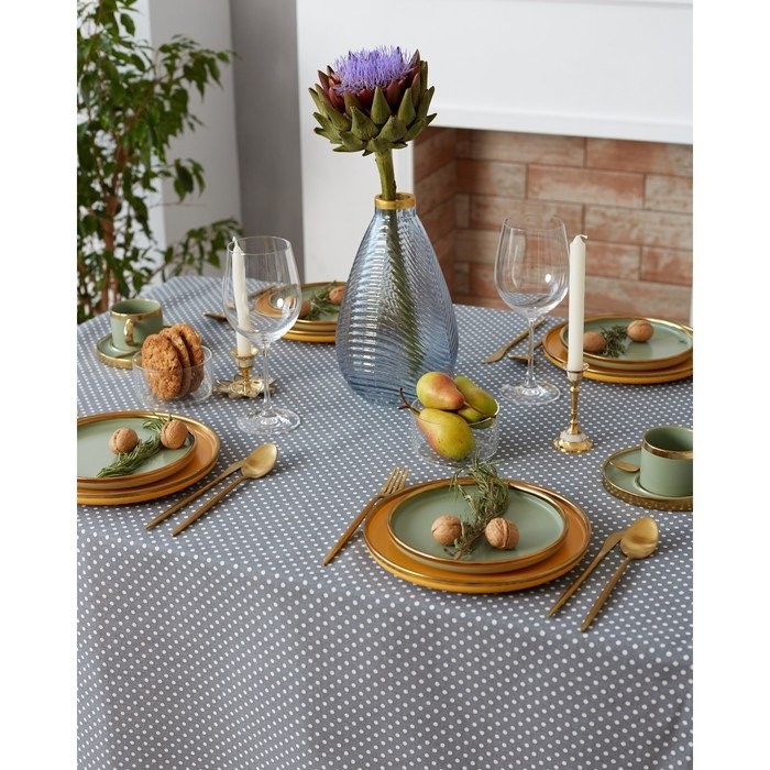 Скатерть Доляна 145х145см, Горох сер, 100%пэ, рогожка 200 гр/м