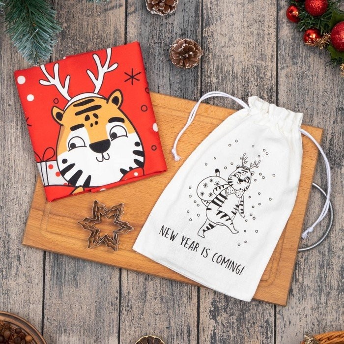 Набор в мешочке «New Year» полотенце 40х73см, формочки для запекания 3 шт
