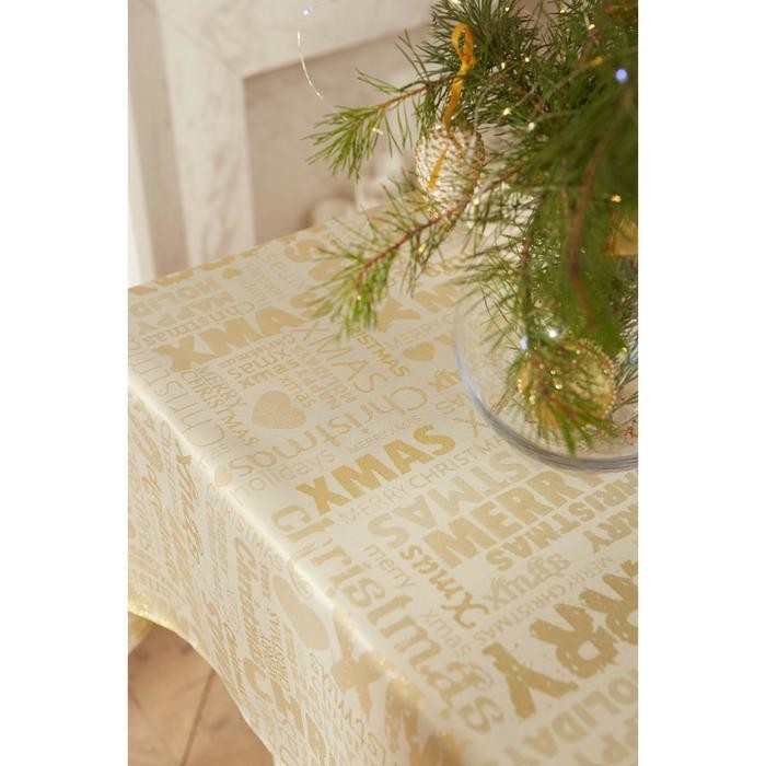 Скатерть Этель «Новый год: Merry xmas» цвет золотой, 142*180 +/-3 см, 115 ±10 гр, 100% п/э