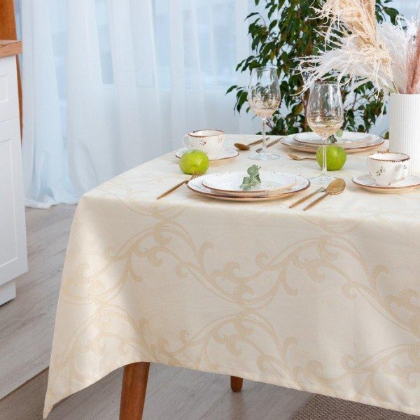 Скатерть Этель «Узор» цв.бежевый, 142*180 +/-3 см, 115 ±10 гр,100% п/э