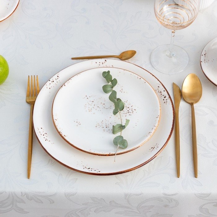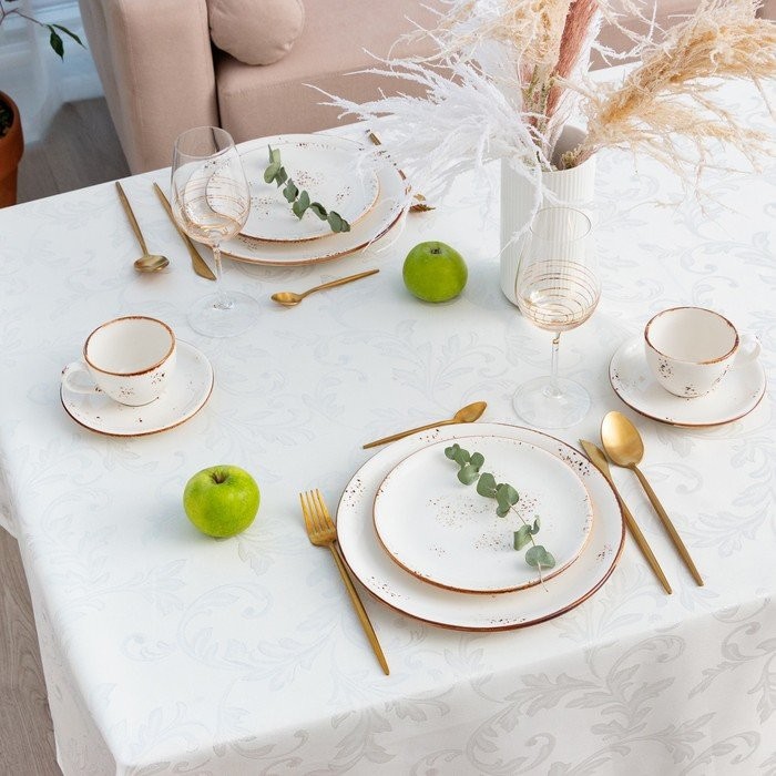Скатерть Этель «White patterns» цвет белый, 142*220 +/-3 см, 115 ±10 гр,100% п/э