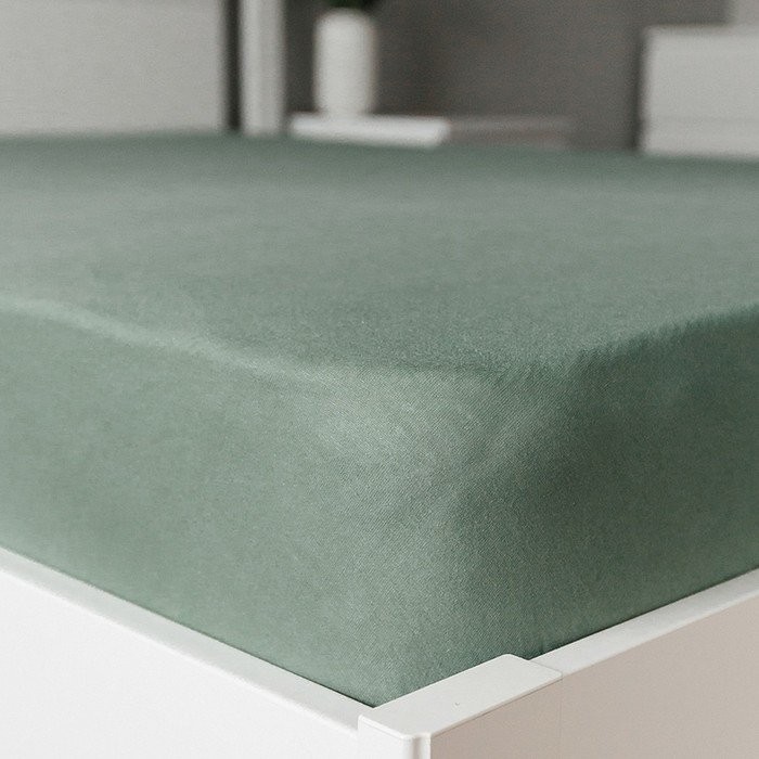 Простыня на резинке трикотажная, размер 200х200х25см, цвет хаки, кулирка 120г/м², 100% хлопок