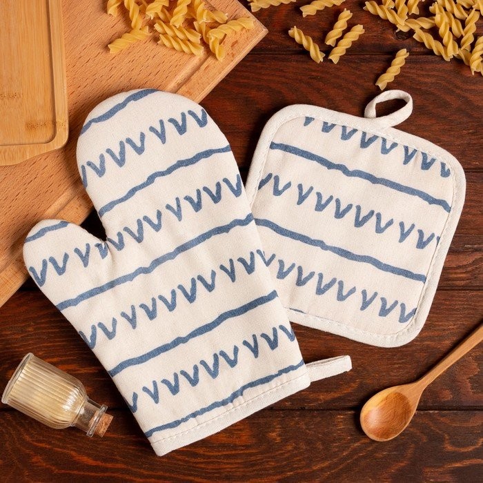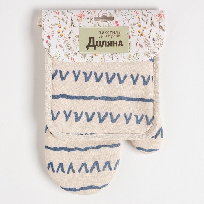 Кухонный набор (2 предмета) Доляна «Треугольники», прихватка 17×17 см, варежка 26×16 см, 100% п/э