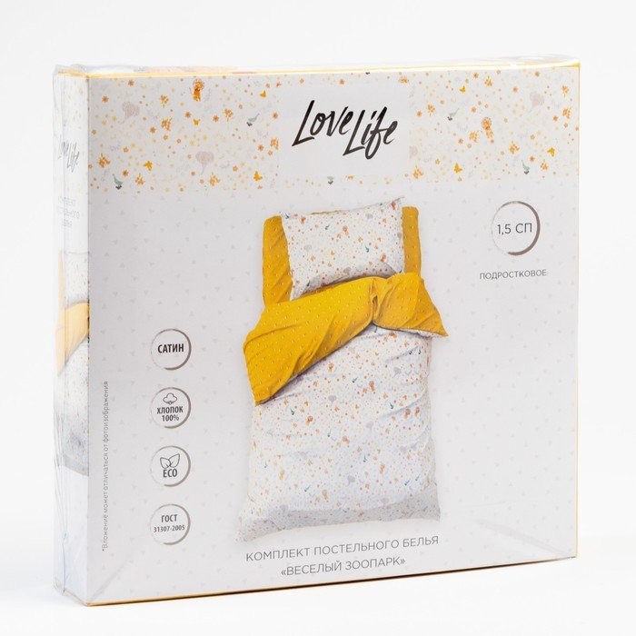 Постельное белье 1.5 сп «LoveLife» Веселый зоопарк, 143×215 см,150×214 см,70×70 см-1 шт. сатин