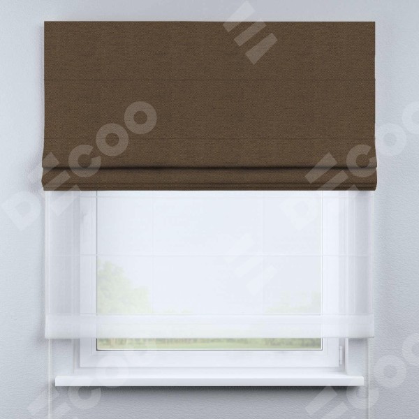 Римская штора «Кортин» день-ночь, ткань лён димаут, тёмно-коричневый