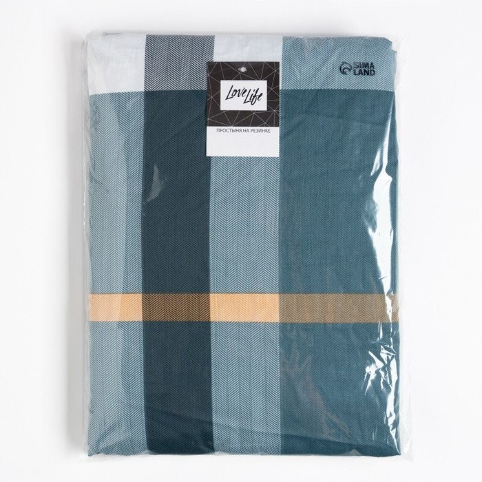 Простыня на резинке LoveLife 160*200*25см, «Клетка», 100% хлопок, сатин, 125г/м²