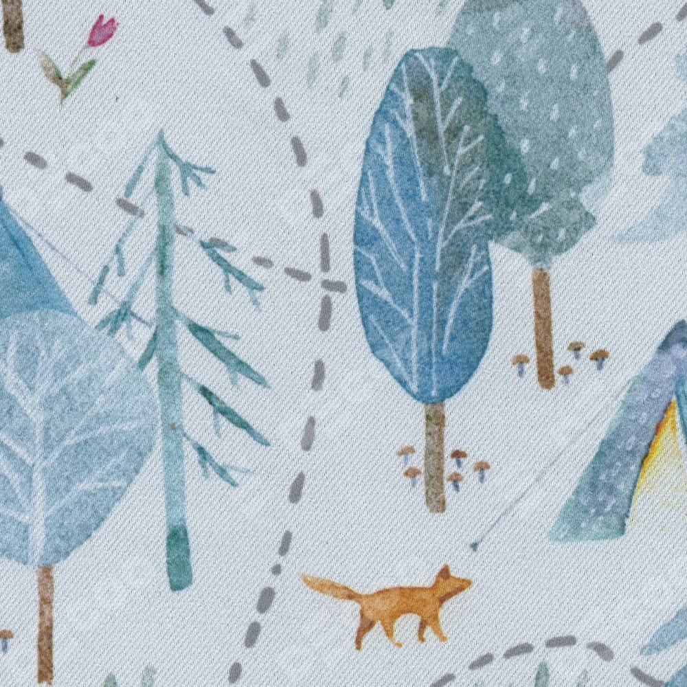 Римская штора день-ночь производителя «Cortin», используется для проёма, пошита из двух полотен, с лицевой блэкаут с нанесением сублимационной печати «Лесистая местность», вторая ткань тюль (по стандарту комплектуется тюль белого цвета артикул V-01). Имеет универсальный механизм и подходит для монтажа: на потолок, на стену и в нишу.