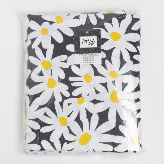Простыня на резинке LoveLife 160*200*25см, «Ромашки», 100% хлопок, сатин, 125г/м²