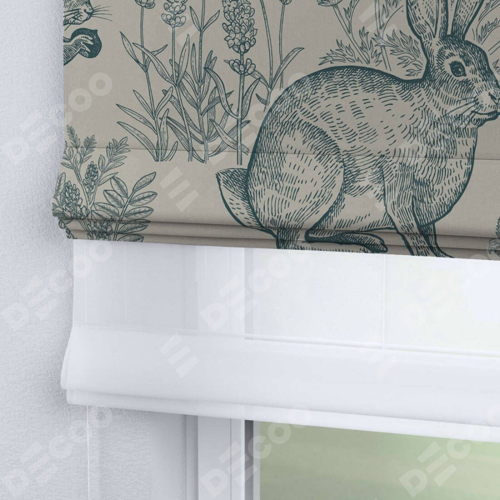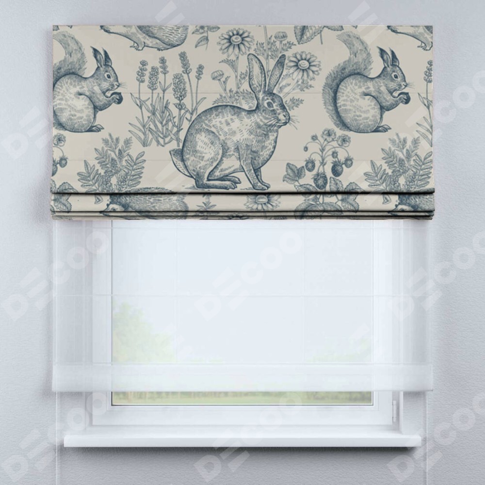 Римская штора день-ночь производителя «Cortin», используется для проёма, пошита из двух полотен, с лицевой блэкаут с нанесением сублимационной печати «На лугу», вторая ткань тюль (по стандарту комплектуется тюль белого цвета артикул V-01). Имеет универсальный механизм и подходит для монтажа: на потолок, на стену и в нишу.