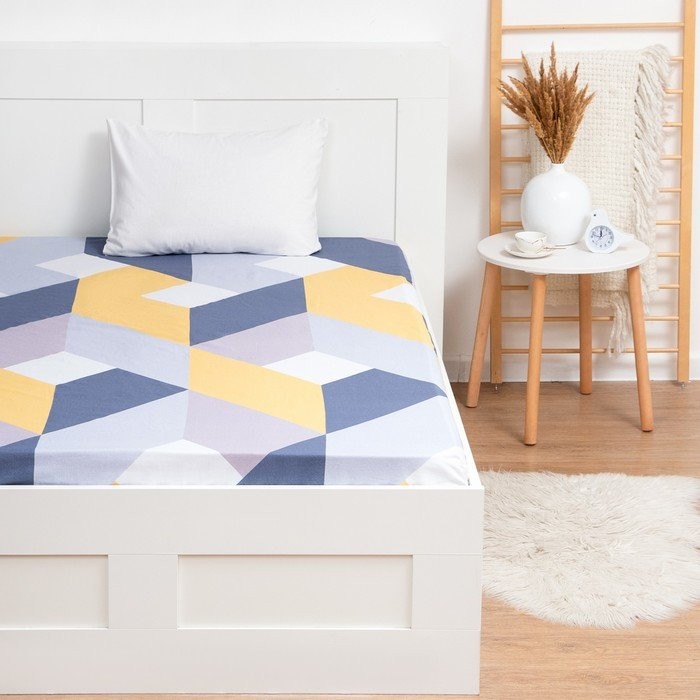 Простыня на резинке LoveLife 140*200*25см, «Треугольники», 100% хлопок, сатин, 125г/м²