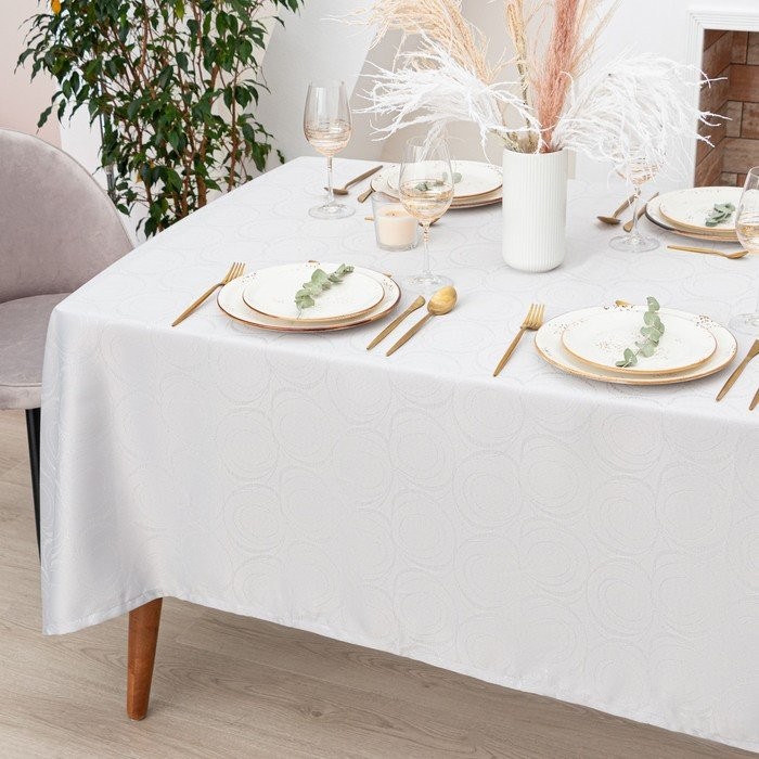 Скатерть Этель «Круги» цв.серебро, 142*220 +/-3 см, 115 ±10 гр,100%