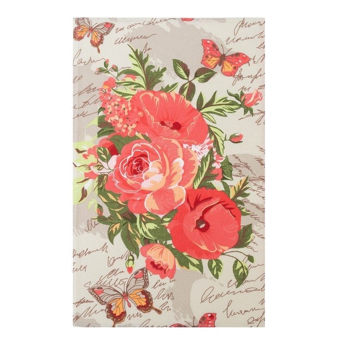 Полотенце 35×60 см, Букет розы-маки, песочный, вафля, 160 гр/м2, хлопок 100%