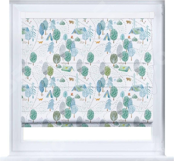 Римская штора производителя «Cortin», устанавливается на створку окна, пошита из ткани блэкаут с нанесением сублимационной печати «Лесистая местность». Штора шьётся по индивидуальным размерам, для данного типа римской шторы возможная ширина от 35 до 150 см., высота до 250 см.