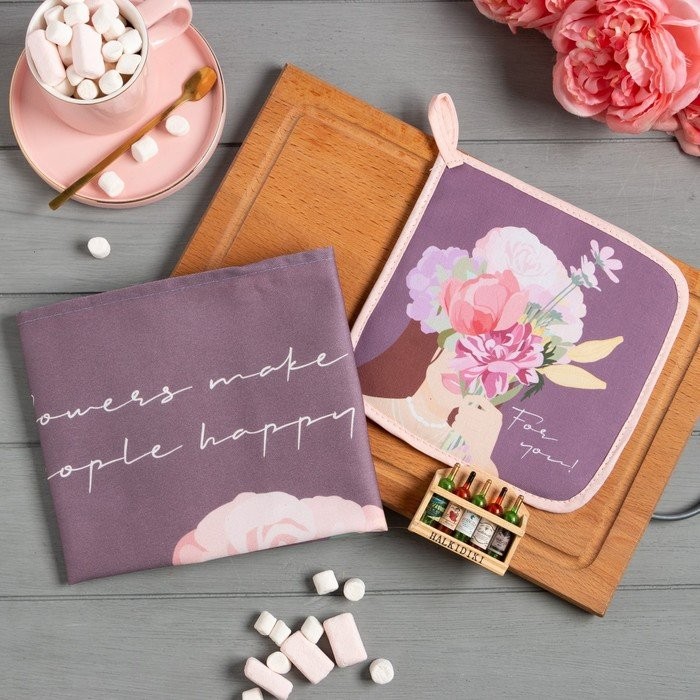 Набор подарочный «Для тебя» полотенце 40х73см, прихватка 19х19см, магнит 11х7см
