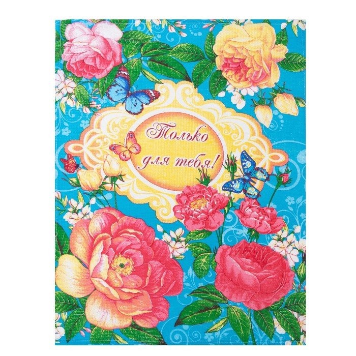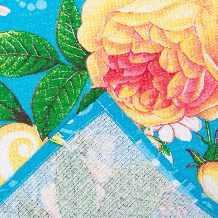 Полотенце в коробке 45×60 см, Английская роза, бирюза, вафля, 160 гр/м2, хлопок 100%
