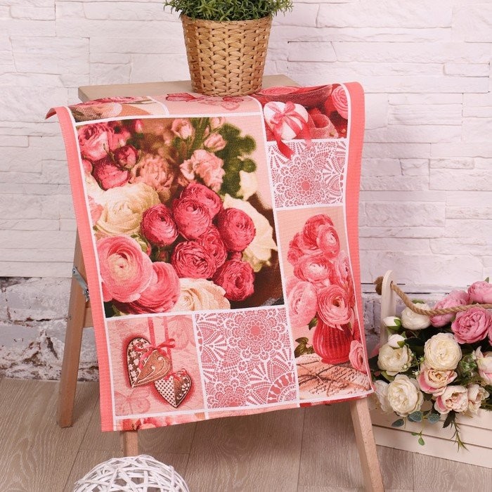 Полотенце 50×60 см, Розовый пэчворк, вафля, 170 гр/м2, хлопок 100%