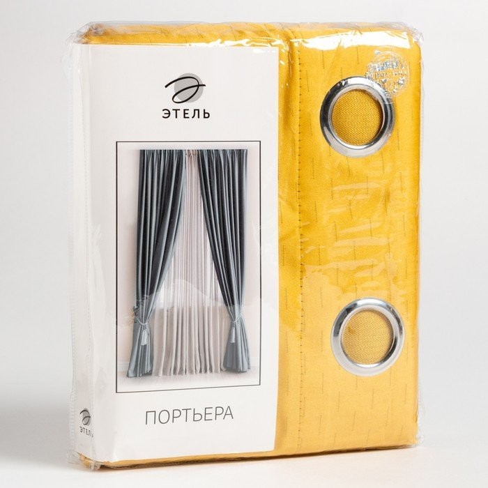 Штора портьерная Этель «Штрихи» цв.желтый,на люверсах 270*300 см, 100% п/э