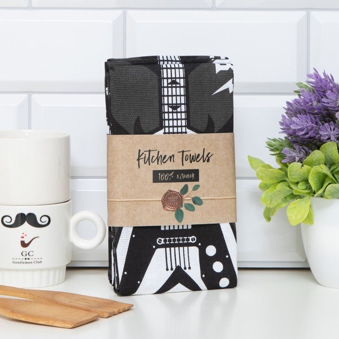 Набор кухонных полотенец Доляна Les’t rock, 35×60 см — 4 шт, 100% хл