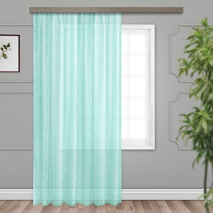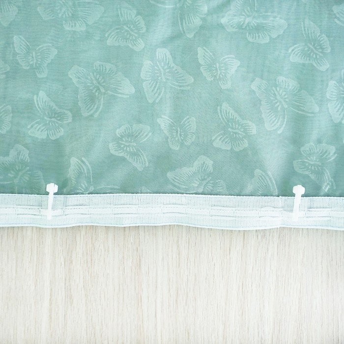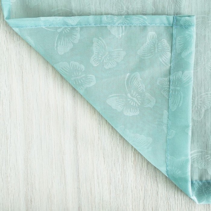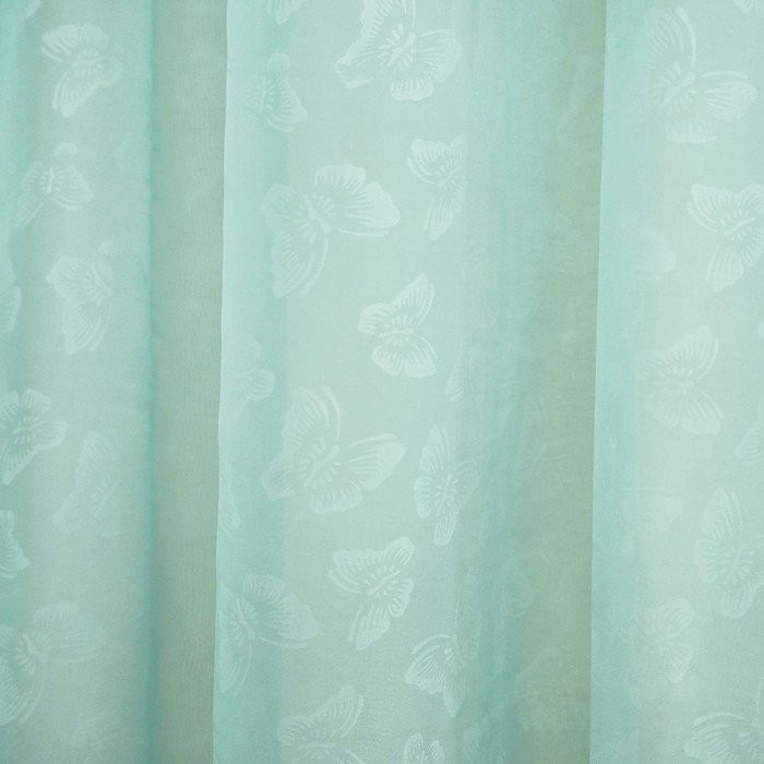 Штора тюль с тиснением бабочки 250×260 см, голубой, шторная лента, пэ