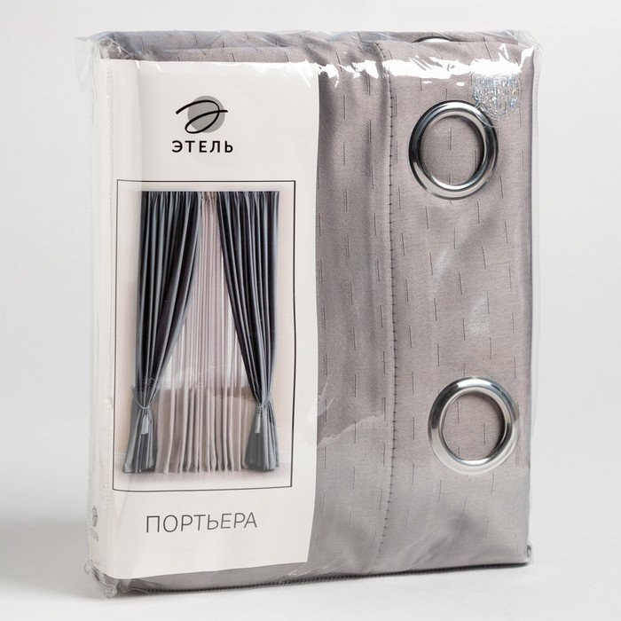 Штора портьерная Этель «Штрихи» цв.цв.серый,на люверсах 250*265 см, 100% п/э