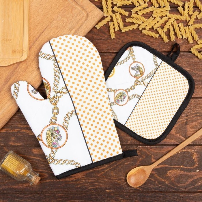 Кухонный набор (2 предмета) Этель «Горох», прихватка 17×17 см, варежка 26×16 см, 100% п/э