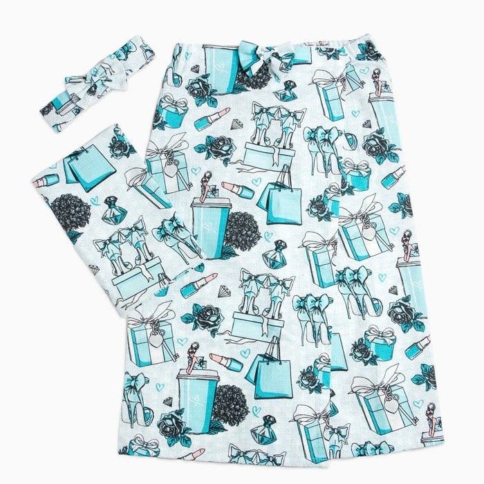 Набор для сауны Этель «Mint mood» парео с бантиком+полотенце 80×150 см+повязка,100% хл