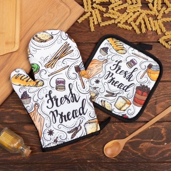 Кухонный набор (2 предмета) Этель Fresh bread, прихватка 17×17 см, варежка 26×16 см, 100% п/э